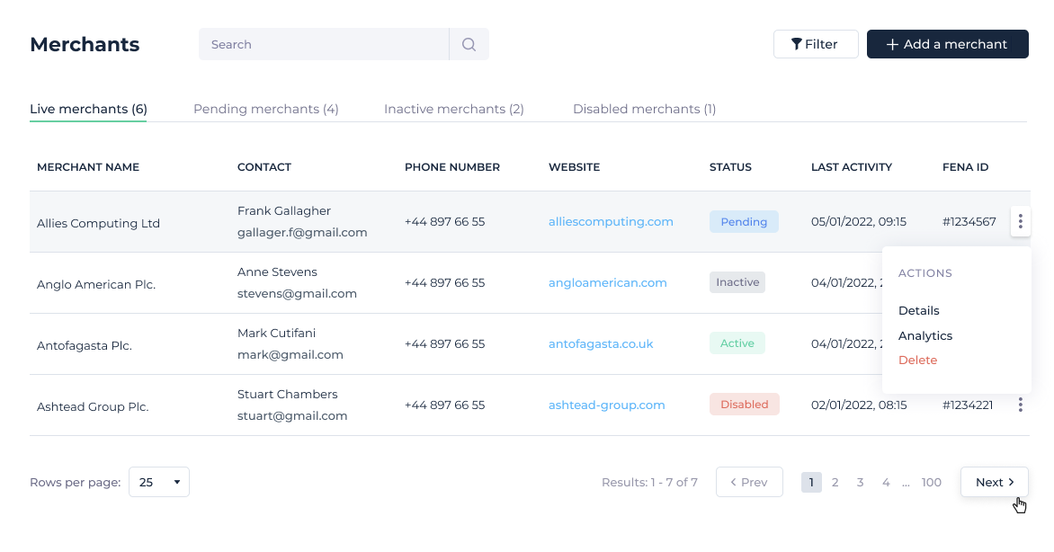 Fena offer Open Banking payments and banking data access as a while label solutions. We offer a full utilising our Partner Portal. Contact us on sales@fena.co to find out more.