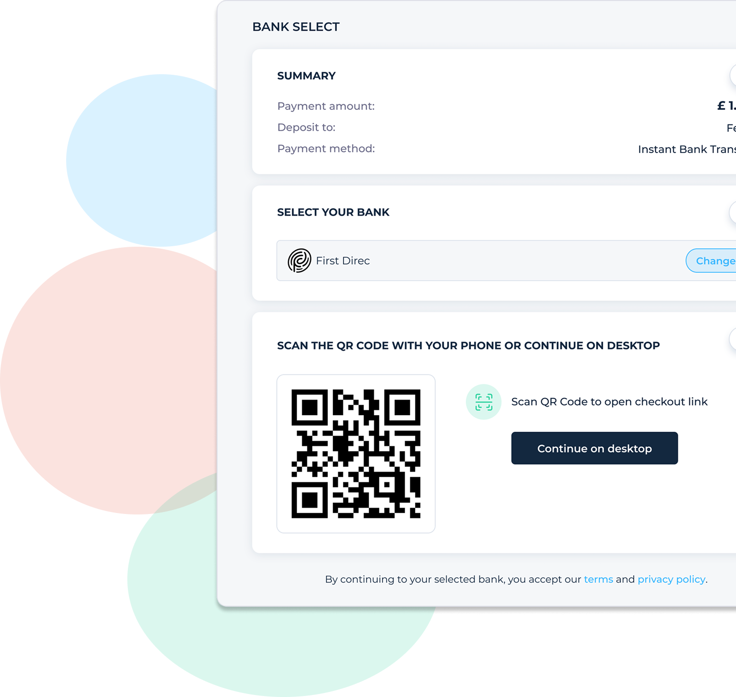 Accept bank transfers as seamlessly as card payments. with our Fena Terminal app supporting QR code payments